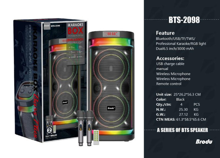 اسپیکر بلوتوثی برودو مدل BTS-2098 گزینهای ایدهآل برای افرادی است که به دنبال یک اسپیکر قدرتمند برای استفاده در فضای باز هستند.